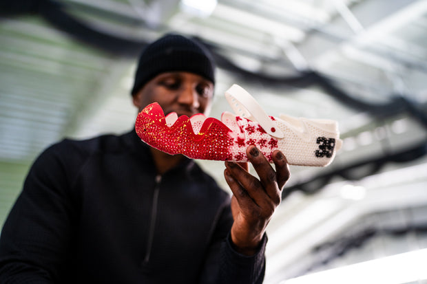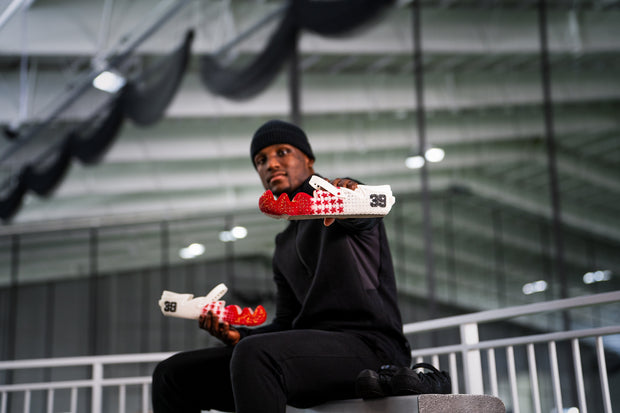 In collaboration with renowned local DMV (DC, Maryland, and Virginia) artist Dez Customz, we gifted two custom pairs of Hypsole Cleat Guards™ to Jeremy ahead of his Commanders playoff debut. Using Hypsole Cleat Guards™ in Ember Red and Onyx Black as a base, Dez and his team customized both pairs in honor of the man, the team, and the city that brought us all together for this special collab.